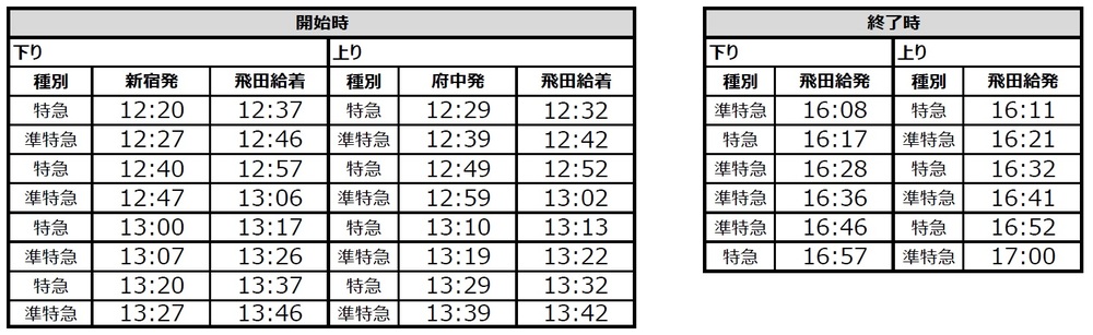 下り…飛田給発16:08~16:57の特急・準特急/計6本