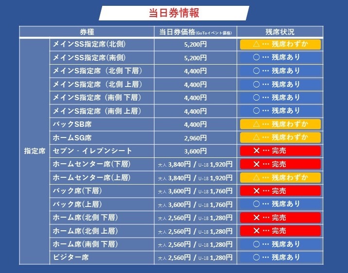 ※開門前の待機列はありません。全席指定席となっております。開門前にスタジアムへご来場いただくとはご遠慮ください。