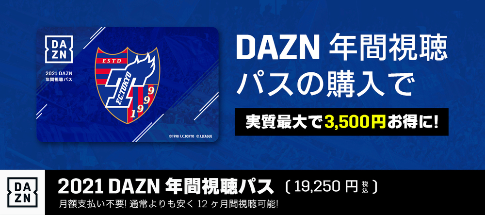 FC東京では、FC東京オフィシャルオンラインショップおよびユーロスポーツ味の素スタジアム店にて『2021DAZN年間視聴パス』の販売を開始しております。