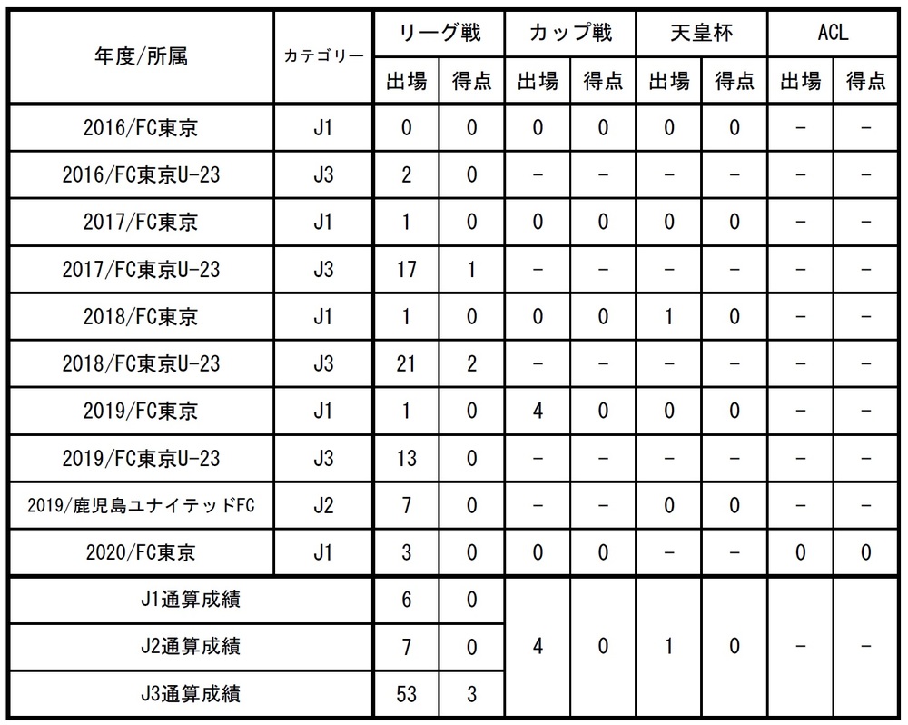 □出場記録(2020シーズン終了時点)