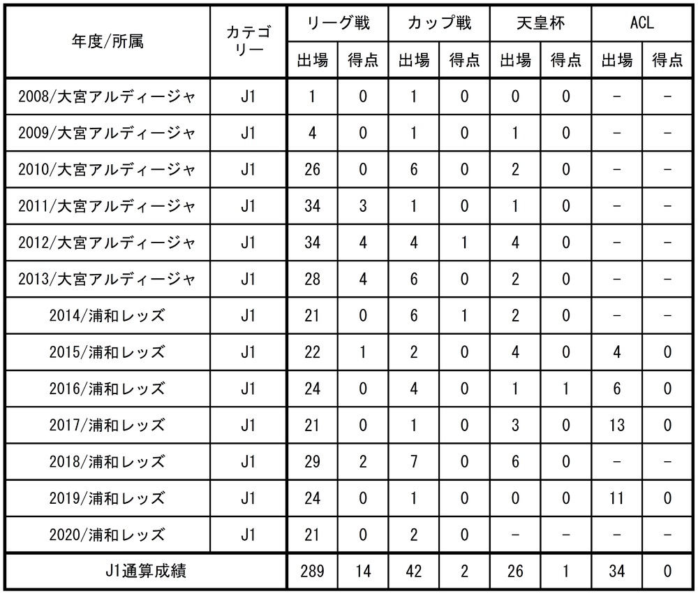 □出場記録(2020シーズン終了時点)