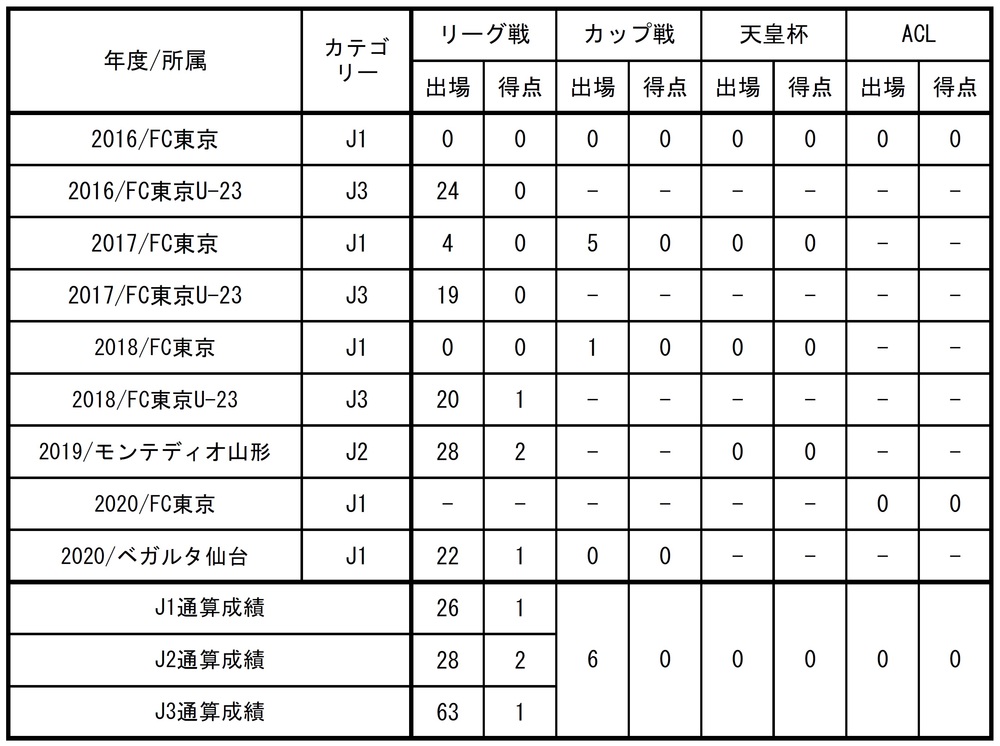 □出場記録(2020シーズン終了時点)