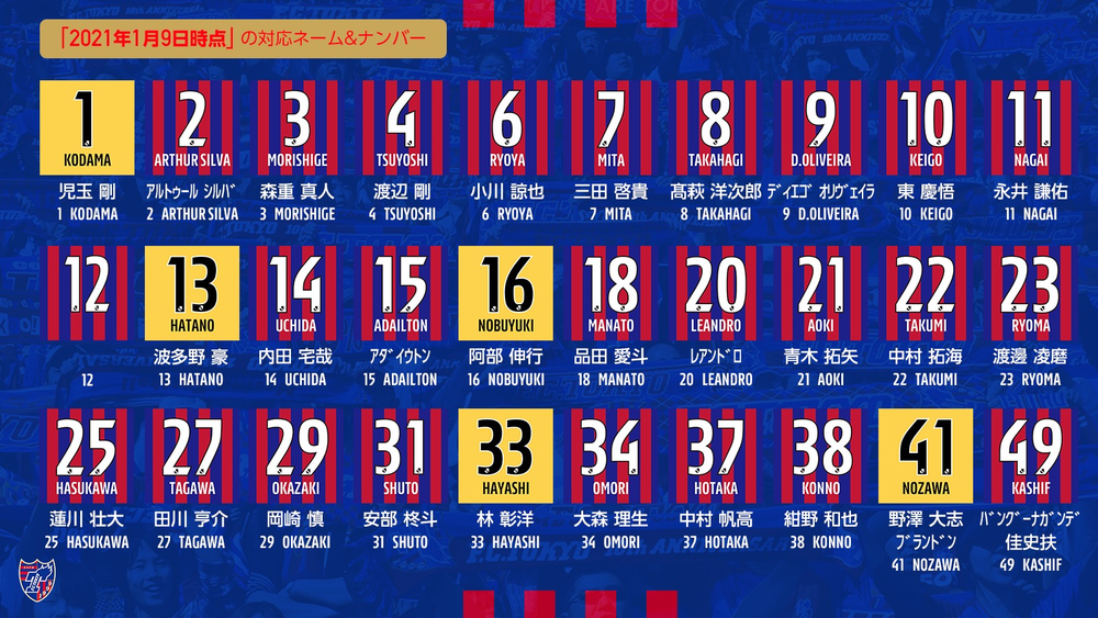 2021シーズンよりJリーグ統一のネーム&ナンバーとなります