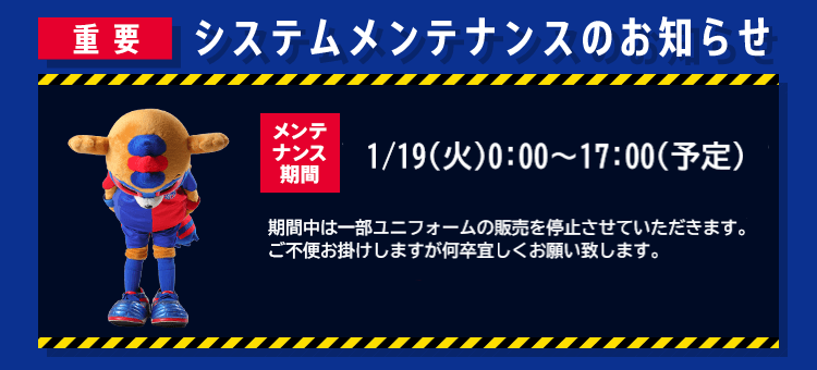 下記の日時におきまして、オフィシャルオンラインショップでユニフォーム販売のシステムメンテナンスを実施するため、一部商品の販売を停止させていただきます。