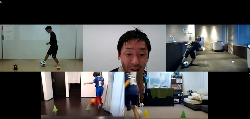 Zoomを通じて、コーチの動きにあわせて、簡単なステップを踏んでボールをたくさん触ります。