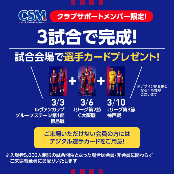 【クラブサポートメンバー限定】3試合連続で選手カードを手に入れよう!