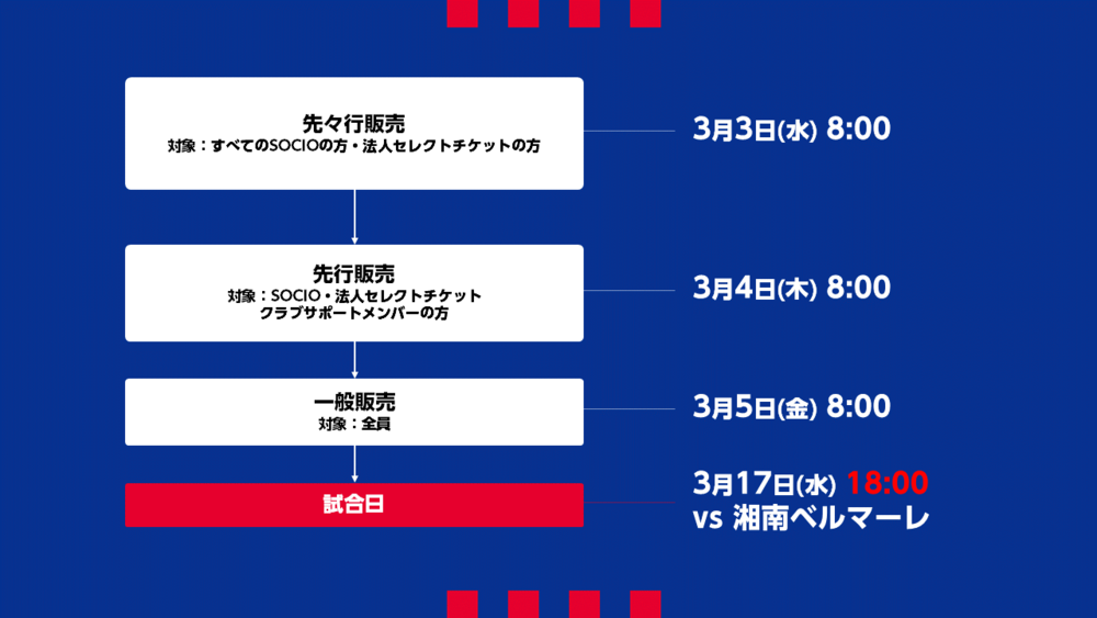 3/17(水) 湘南戦 チケット販売について