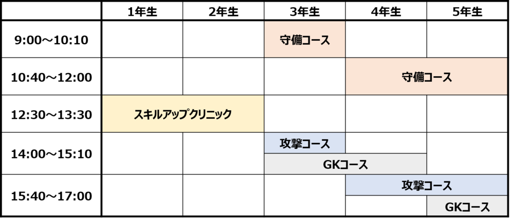 小学1・2・3・4・5年生の男女(GKコースは3・4・5年生のみ)