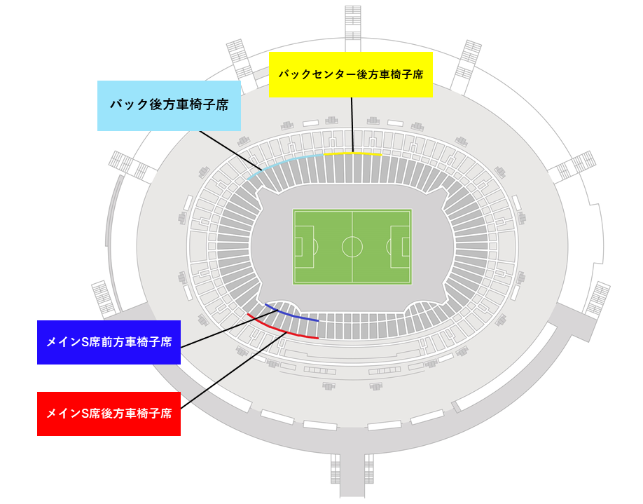 「メインS後方」・「バック後方」・「バックセンター後方」車椅子席(旧臨時車椅子/約40席)
