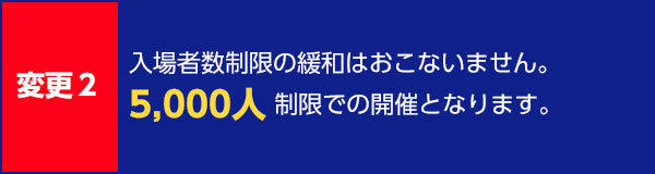 ※5,000人制限時の試合開催ではバック自由席特典チケットの引換、バックセンター指定席招待はございません。何卒ご容赦ください。