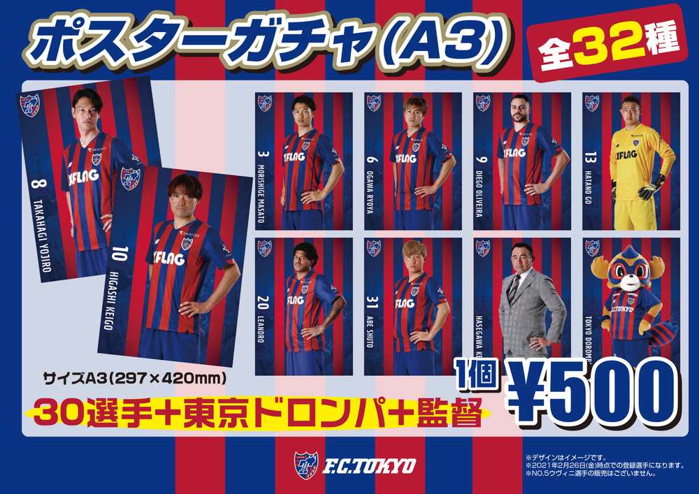 3月10日(水) 2021明治安田生命J1リーグ 第3節 vs ヴィッセル神戸(18:00キックオフ/味の素スタジアム)にて、グッズ売店・ガチャガチャコーナーを実施いたします。