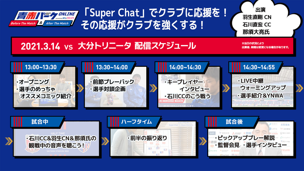 3/14(日) 大分戦『青赤パークオンラインBefore/After The Match presented by めちゃコミック』開催!