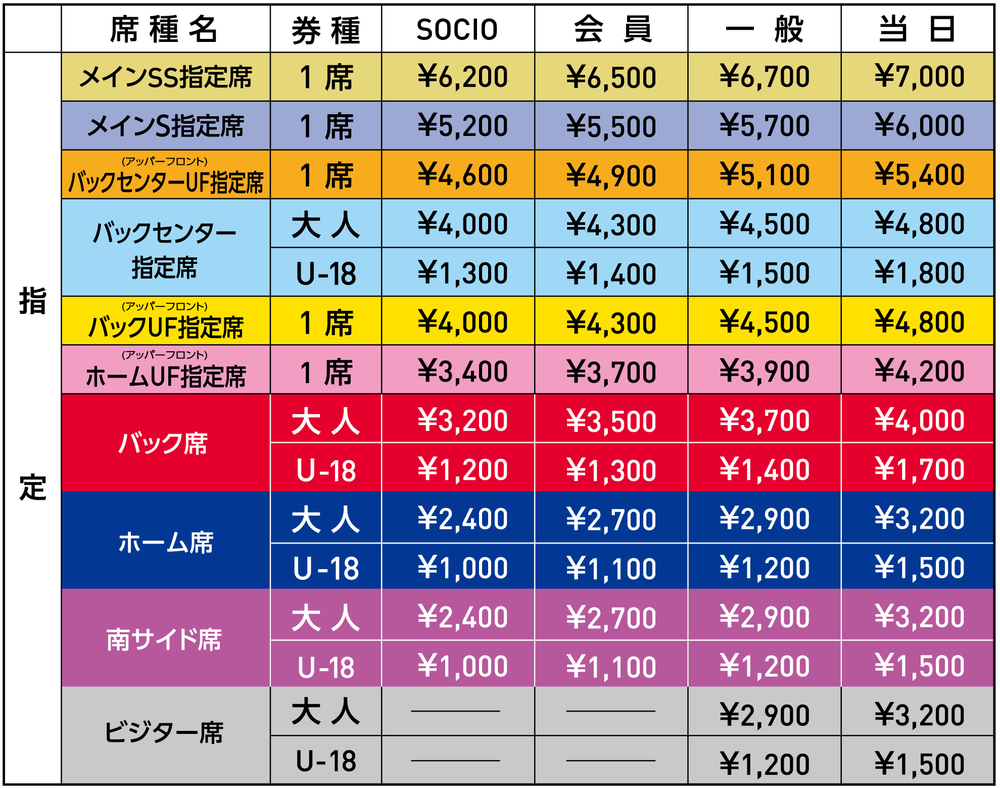 ・全席指定席化に伴って、SOCIO優先入場は実施いたしません。