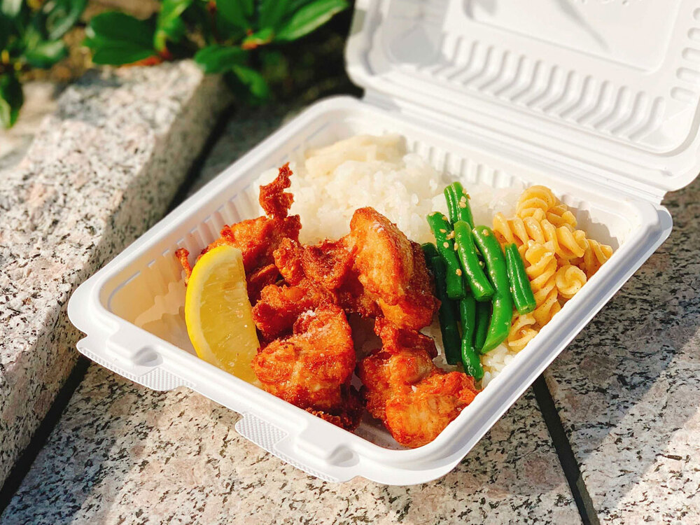 ・キッチンカーのスタッフはマスク・手袋の着用、車両へのビニールシート設置を徹底します。車両の仕様によってビニールシートが設置できない場合は、スタッフがフェイスガードを装着します