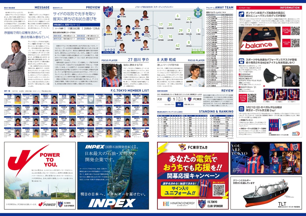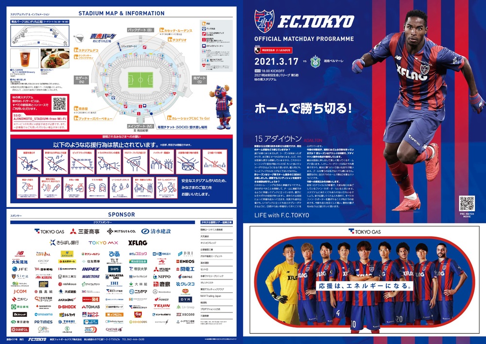 3/17(水) 2021明治安田生命J1リーグ 第5節 vs 湘南ベルマーレ(18:00キックオフ/味の素スタジアム)のオフィシャルマッチデープログラムについて、下記のとおりご案内いたします。