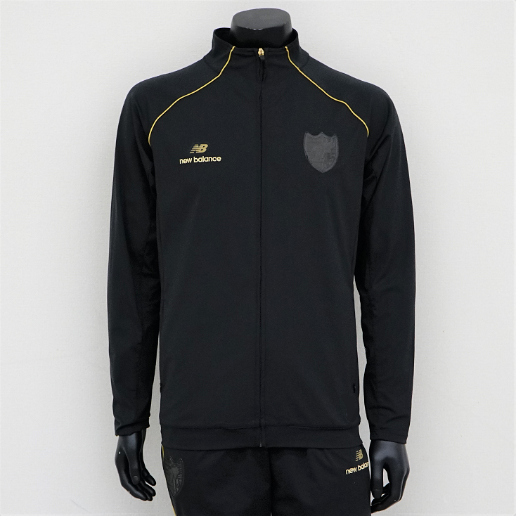 選手がキャンプや公式戦の移動時などに着用しているモデルです。ブラックのボディにゴールドのパイピング、エンブレムはブラック一色でスタイリッシュに着こなすことができます!さらに青赤のユニフォームが映える一枚です!