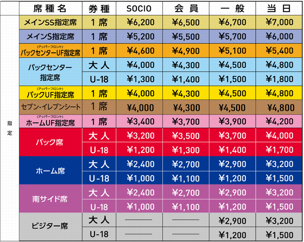 ※ビジターチームを応援される方は「ビジター席」のチケットをお買い求めください。