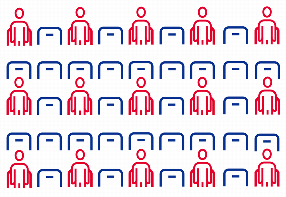 その後、制限が緩和した場合は、販売していなかった列に左右1席あけた市松模様で追加販売を予定しています。