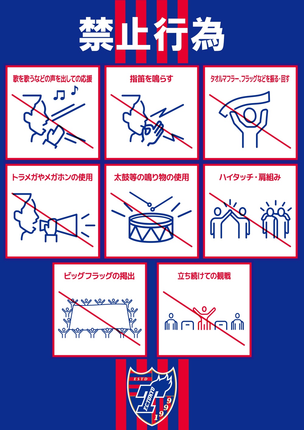 Jリーグ統一禁止ルール(Jリーグ共通観戦マナー&ルール)およびFC東京サッカー試合運営管理規定、ならびに「Jリーグ 新型コロナウイルス感染症対応ガイドライン」を遵守くださいますようお願いいたします。