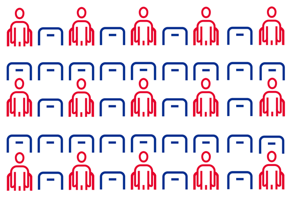 制限緩和が決定したため、販売していなかった列に左右1席あけた市松模様での追加販売を実施いたします。