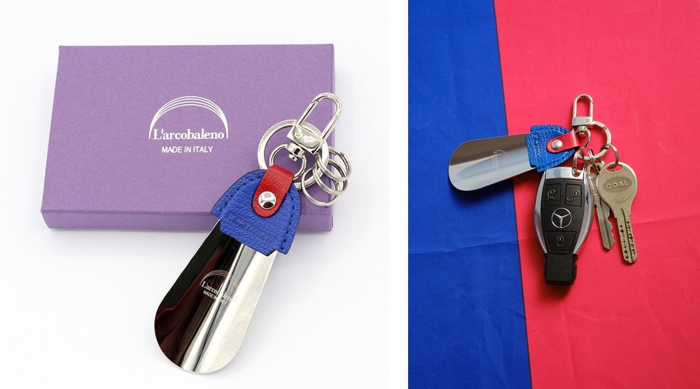 靴ベラとしてもキーホルダーとしても使えて革靴を履くビジネスマンに携帯してもらいたいアイテムとなっております!