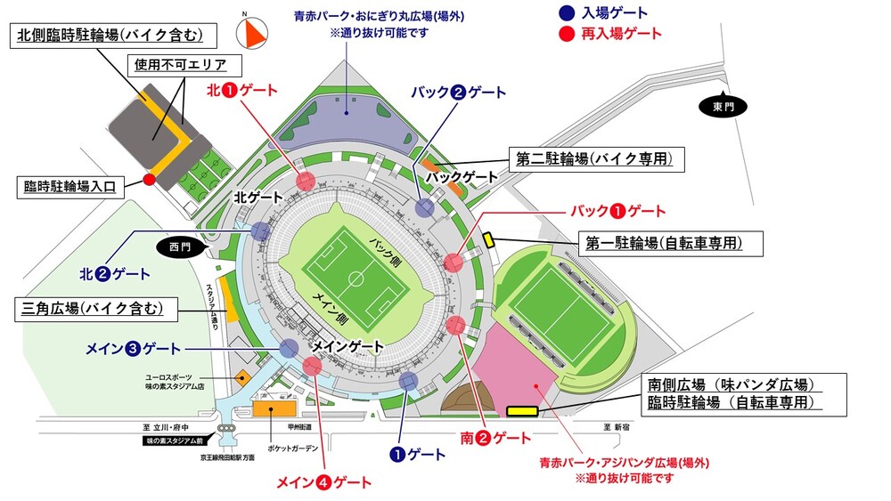 【味の素スタジアムからのお知らせ】4/11(日) 川崎戦自転車およびバイク駐輪場について