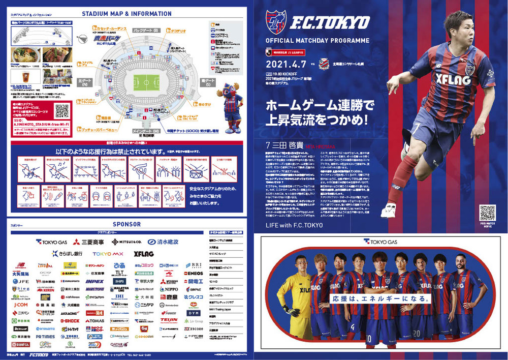 4/7(水) 2021明治安田生命J1リーグ 第7節 vs 北海道コンサドーレ札幌(19:00キックオフ/味の素スタジアム)のオフィシャルマッチデープログラムについて、下記のとおりご案内いたします。