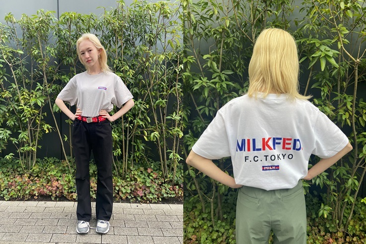 前面はシンプルにFC東京×MILKFED.オリジナルのBARロゴ、背面はダブルネームを入れたコラボ感満載のTシャツです!