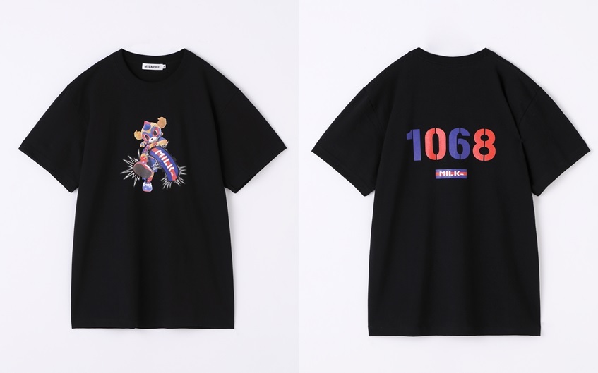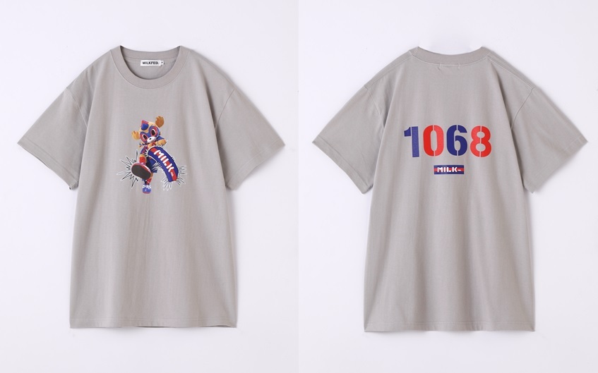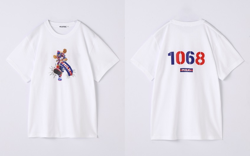 前面は東京ドロンパがMILKFED.ロゴを蹴ってしまったインパクト大なデザイン!背面はその分控えめに1068(ドロンパ)とプリントしたかわいいTシャツとなっております!