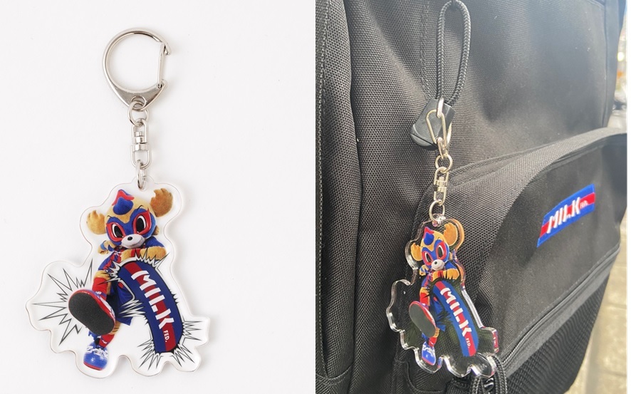 MILKFED.コラボTシャツ TD’21と同じデザインの東京ドロンパキーホルダーです。