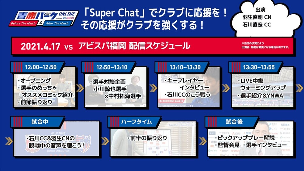 ① 『青赤パークオンラインBefore The Match presented by めちゃコミック』(試合前)