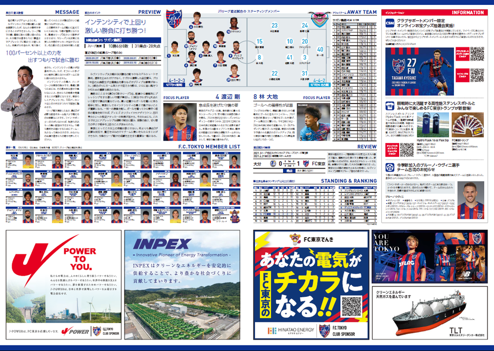 4月24日(土) 2021明治安田生命J1リーグ 第11節 vs サガン鳥栖(14:00キックオフ/味の素スタジアム)のオフィシャルマッチデープログラムについて、下記のとおりご案内いたします。
