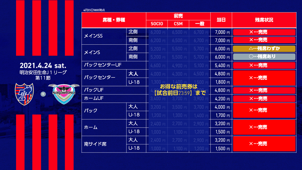 チケットFC東京(Jリーグチケット)でのみ販売いたします。