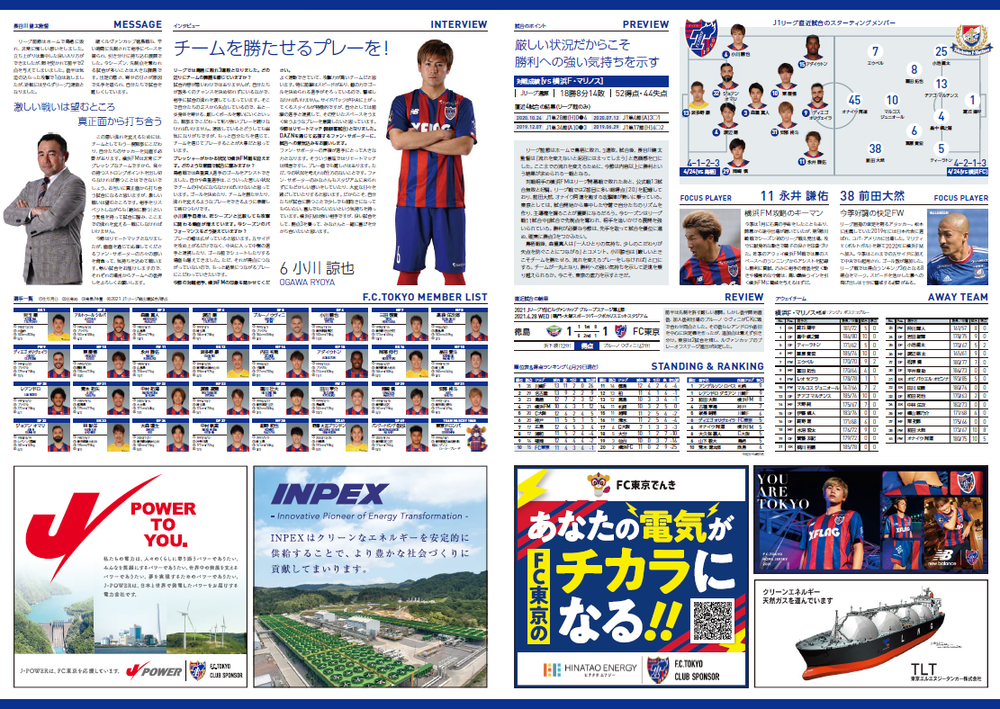 5月1日(土) 2021明治安田生命J1リーグ 第12節 vs 横浜F・マリノス(14:00キックオフ/味の素スタジアム)のオフィシャルマッチデープログラムについて、下記のとおりご案内いたします。