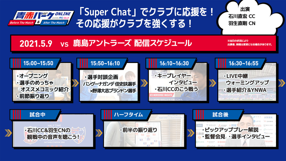 5/9(日) 鹿島戦『青赤パークオンラインBefore/After The Match presented by めちゃコミック』開催のお知らせ