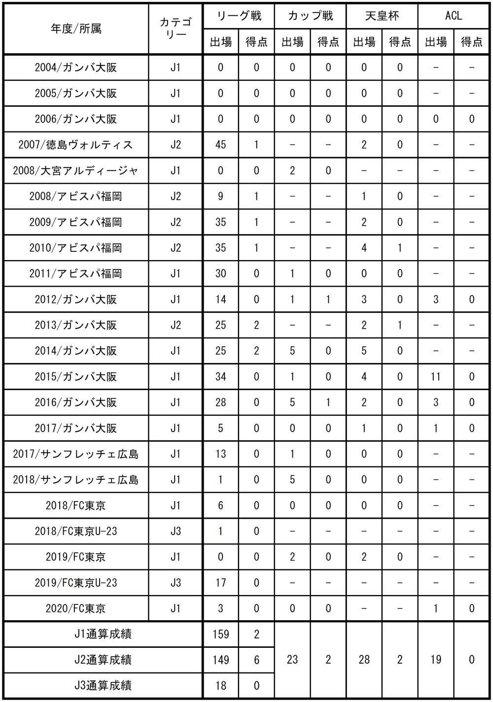 □出場記録(2020シーズン終了時点)