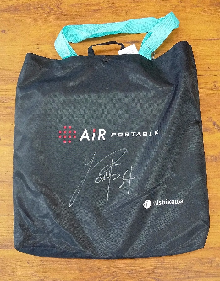 西川株式会社提供 エアーポータブル・クッションS(大森理生選手サイン入り)