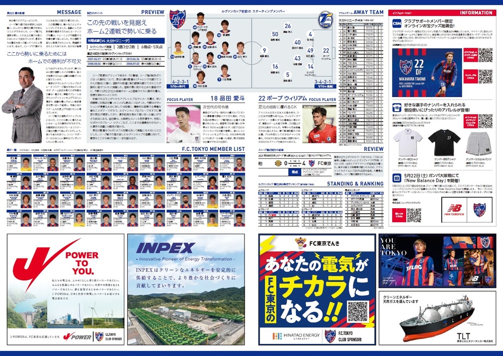 5月19日(水) 2021JリーグYBCルヴァンカップ グループステージ 第6節 vs 大分トリニータ(19:00キックオフ/味の素スタジアム)のオフィシャルマッチデープログラムについて、下記のとおりご案内いたします。