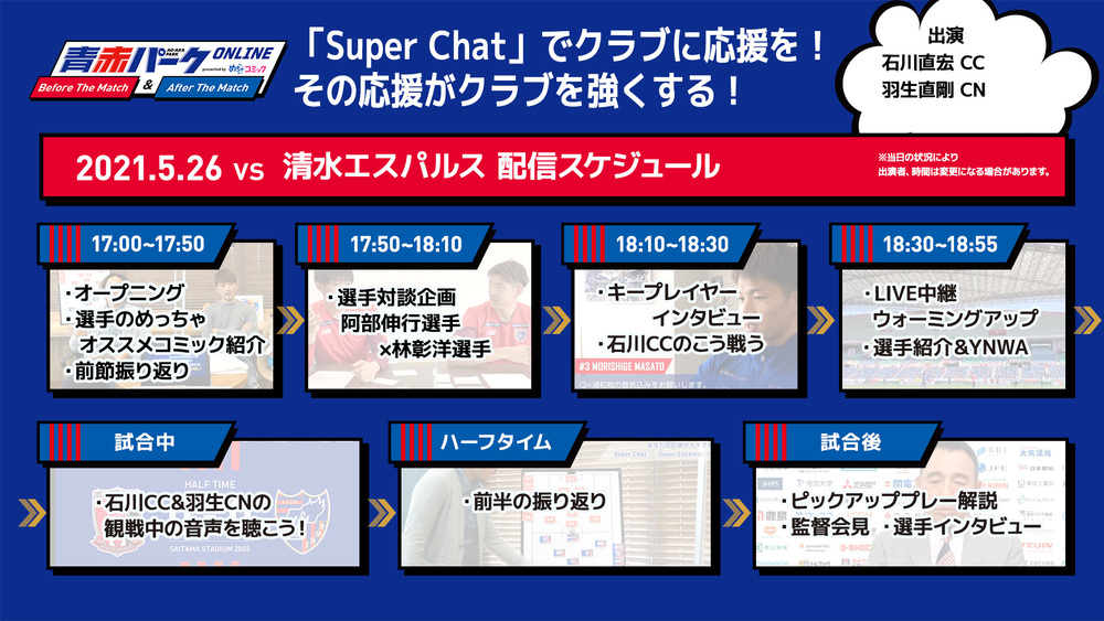 ① 『青赤パークオンラインBefore The Match presented by めちゃコミック』(試合前)
