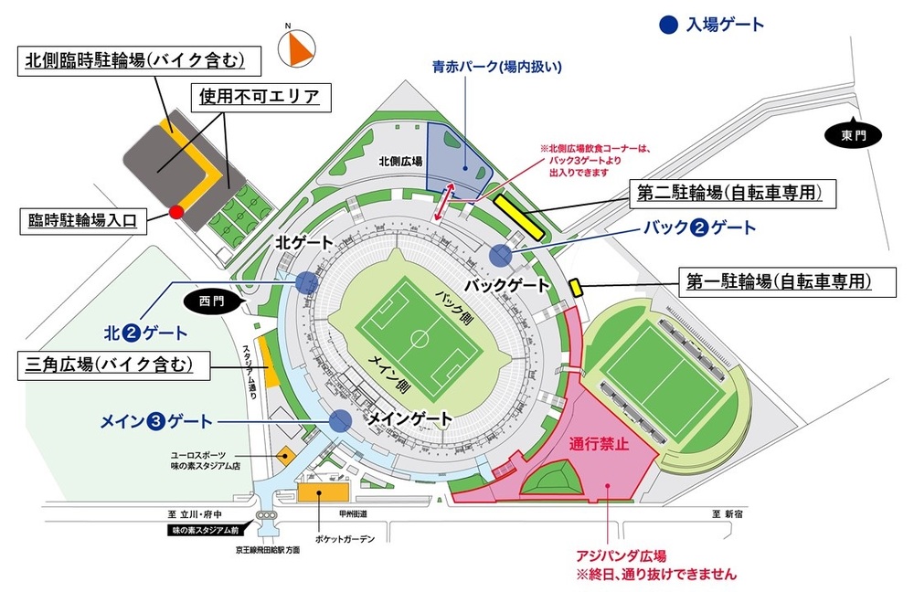【味の素スタジアムからのお知らせ】5/30(日) 広島戦自転車およびバイク駐輪場について