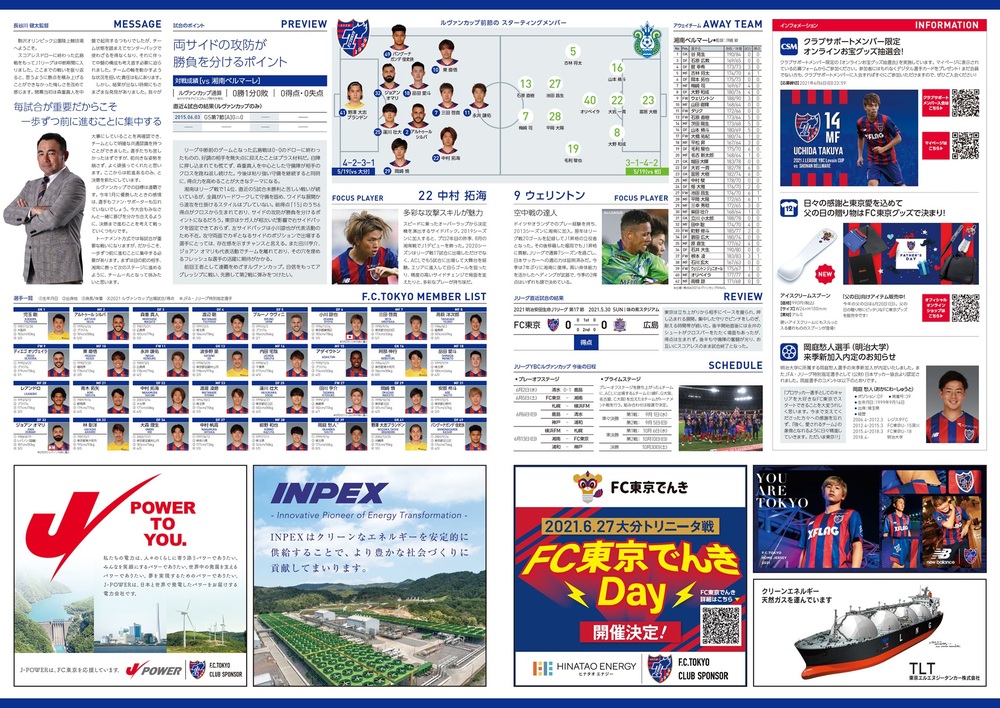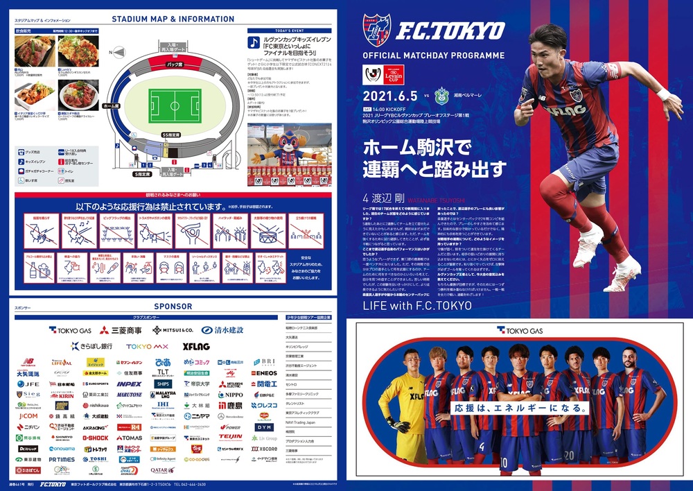 6月5日(土) 2021 JリーグYBCルヴァンカップ プレーオフステージ 第1戦 vs 湘南ベルマーレ(14:00キックオフ/駒沢オリンピック総合運動場陸上競技場)のオフィシャルマッチデープログラムについて、下記のとおりご案内いたします。