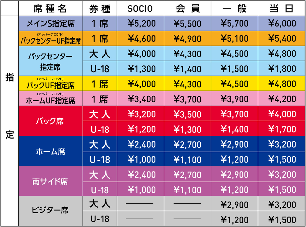 ※現在発出されている緊急事態宣言の実施期間(6月20日(日))以降に開催される試合のため、5,000人制限時の価格から変更しております。