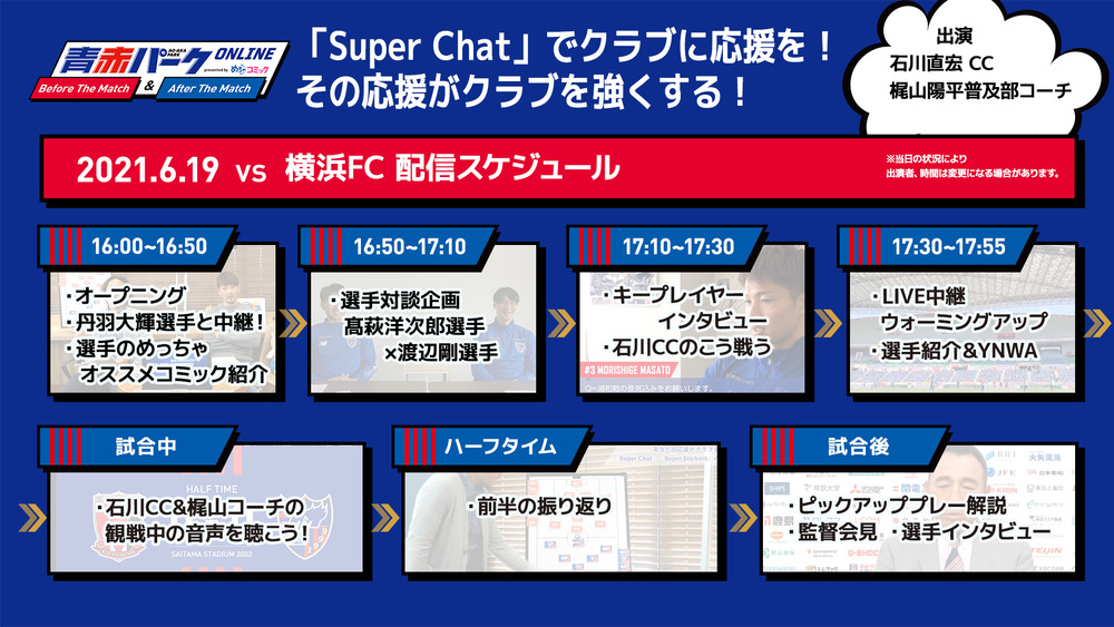 6/19(土)横浜FC戦『青赤パークオンラインBefore/After The Match presented by めちゃコミック』開催のお知らせ