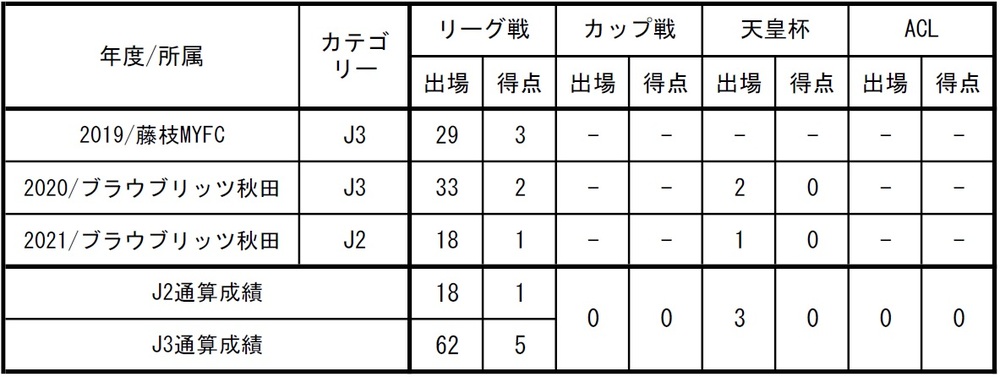 □ 出場記録(2021年6月24日時点/国内クラブ所属時のみ)