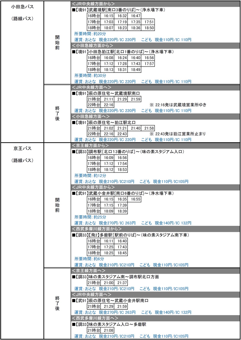 6月27日(日) 2021明治安田生命J1リーグ 第20節 vs 大分トリニータ(19:00キックオフ/味の素スタジアム)にて運行されるシャトルバス・路線バスについてご案内いたします。