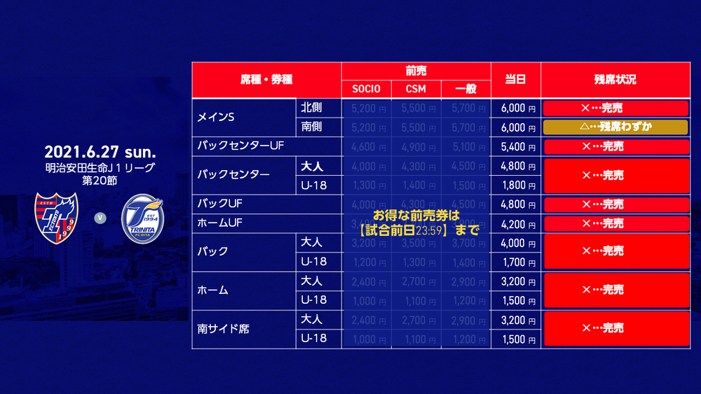 チケットFC東京(Jリーグチケット)でのみ販売いたします。