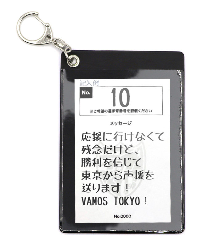 ①ユーロスポーツ味の素スタジアム店限定で販売するオリジナルネームタグをお買い求めいただき、中のメッセージカードにその場でクラブや選手への応援メッセージをご記入ください。