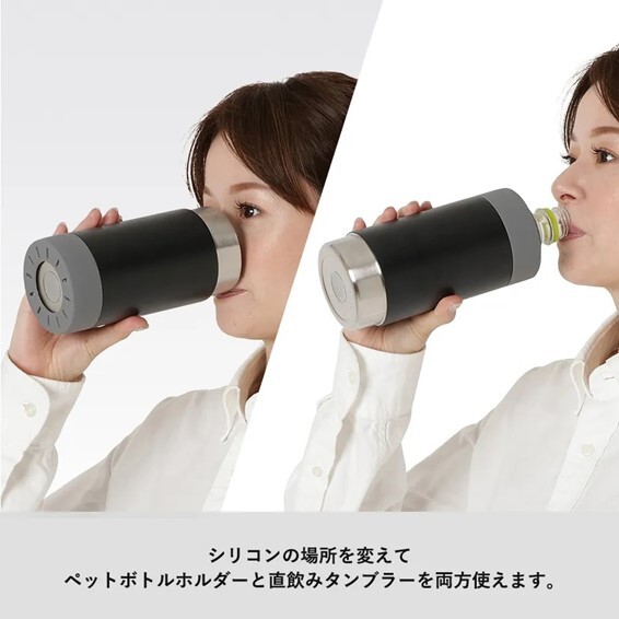 夏は冷たいペットボトルをホールド、また直飲みでもサーモタンブラーとしてもお使いいただけます。