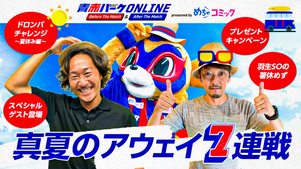 『青赤パークオンラインBefore/After The Match presented by めちゃコミック』真夏のアウェイ7連戦開催のお知らせ