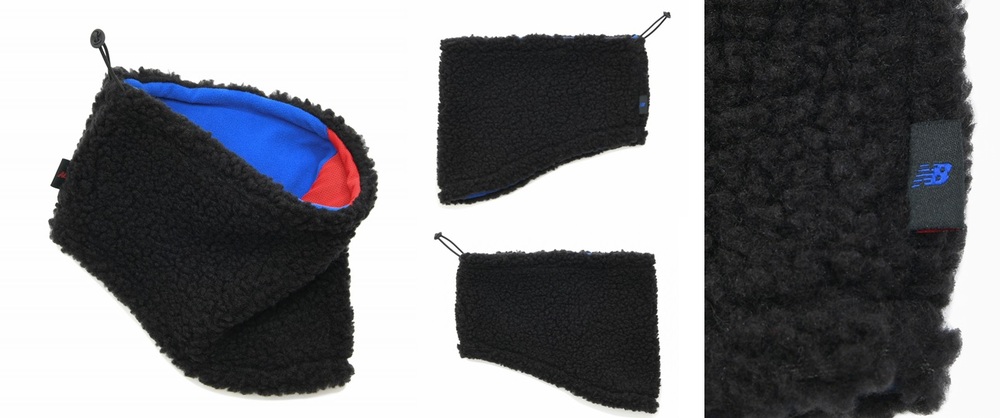 表はボア素材、裏にはチームカラーである青赤のフリース素材を採用したリバーシブルネックウォーマー。